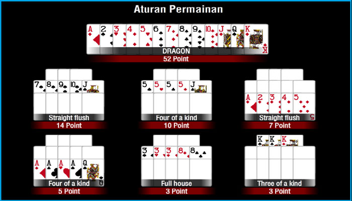 tingkatan kekuatan atau kemenangan. Berikut macam susunan kartu untuk